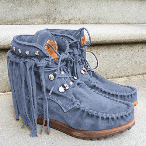 Women Rivet Fringed Boots Ankle Boots