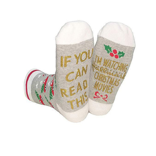 I'M WATCHING CHRISTMAS MOVIES Gold Powder Letters Christmas Socks