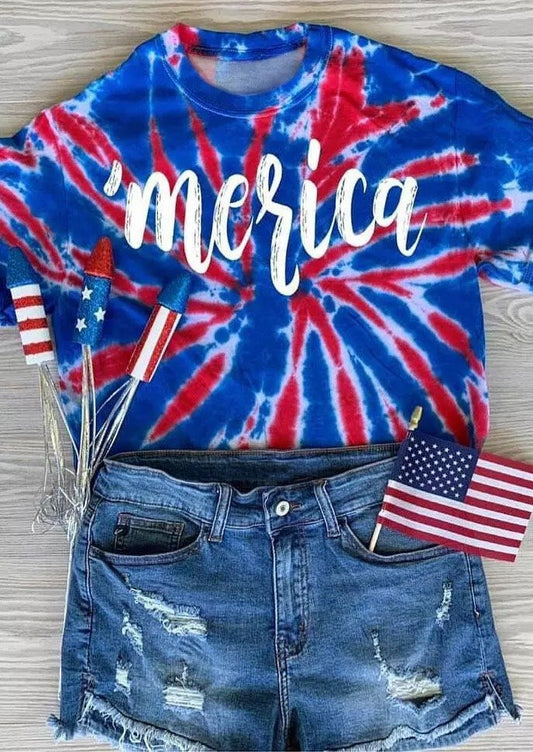 Women Tie Dye Merica Short Sleeve T-shirt