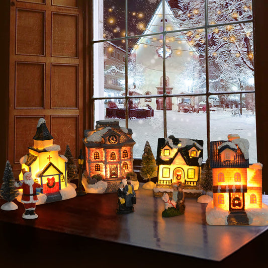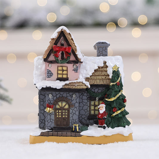 LED Christmas Decorations Resin Small House Micro Landscape Castle Decoration