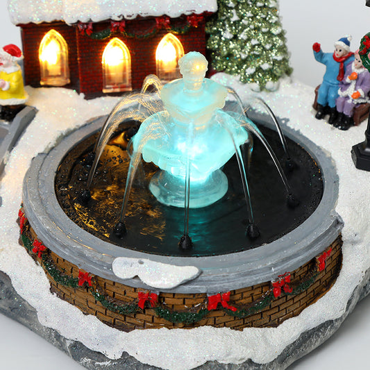 Christmas Village Fountain Luminous Music Snow Village Resin Decoration Gift