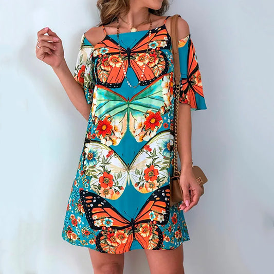 Summer Hot Sale Fashion Short Sleeve Round Neck Printed Holiday Dress