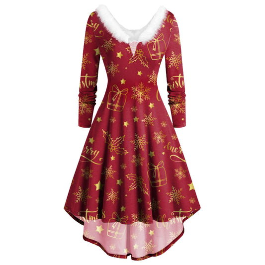 Bohemian Deep V Neck Dress Big Swing Beach Skirt