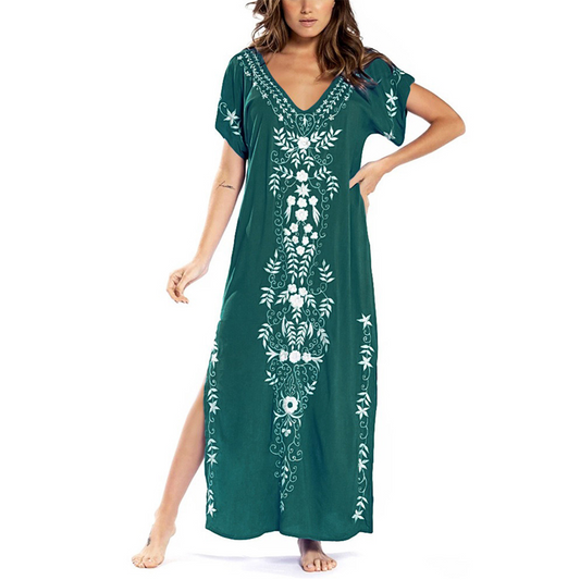Boho Dress Ruffle Short Sleeve Print Long Dress