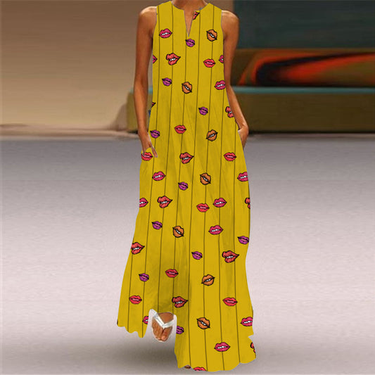 Summer Women's Sleeveless Vest Print Maxi Dress