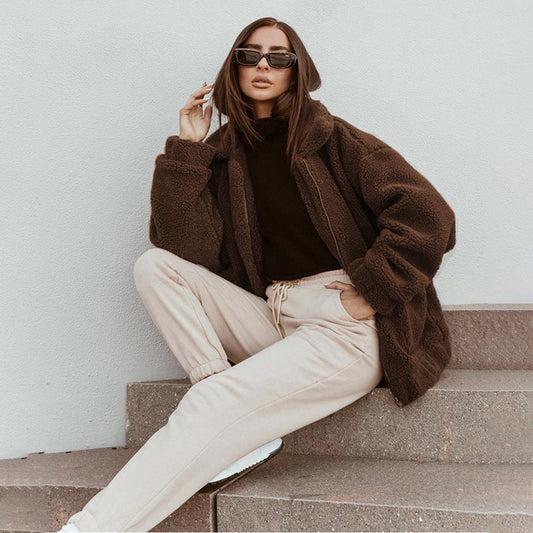 Women's Plush Cardigan Lapel Coat
