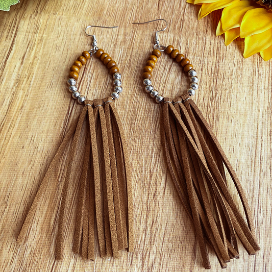 Woman Tassel Western Cowboy Style Turquoise Bead Earrings