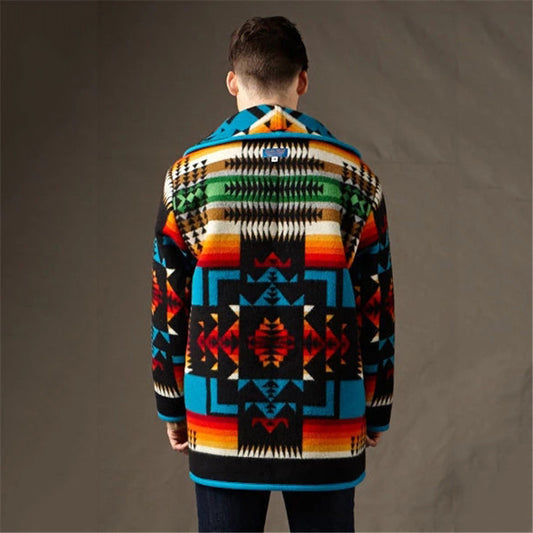Men's Check Cardigan Long Loose Large Sweater Jacket