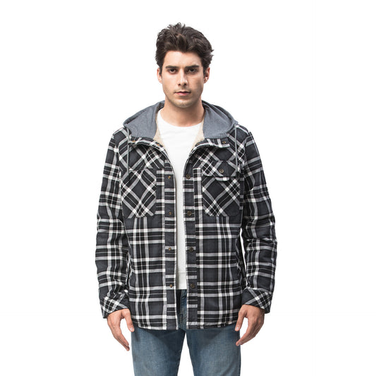 Men's Coat Casual Multicolor Stitching Thick Plaid Hooded Jacket
