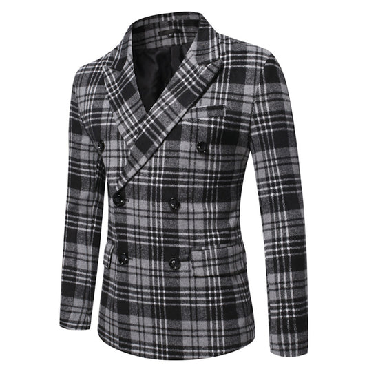 Double-Breasted Casual Slim Plaid Men's Leisure Blazer