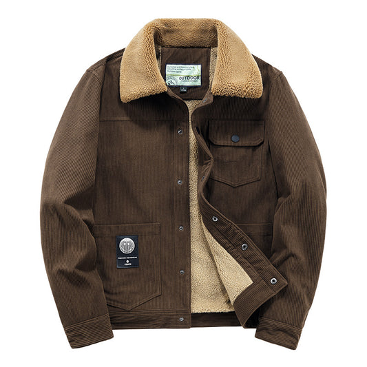 Plain Lapel Pocket Fleece Winter Jacket for Men