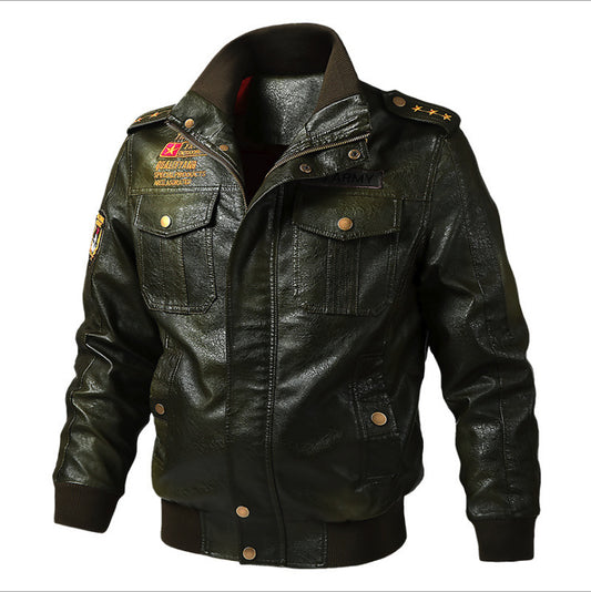 Fashion Stand Collar Standard Letter Zipper Men's Leather Jacket