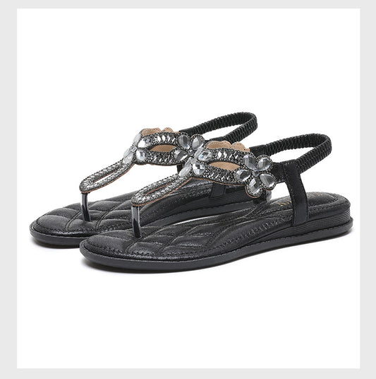 Womens Set-toe Sandals Colored Diamond Beach Shoes
