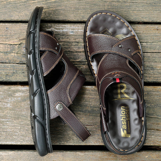 Cowhide Sandals Men's Beach Sandals And Slippers