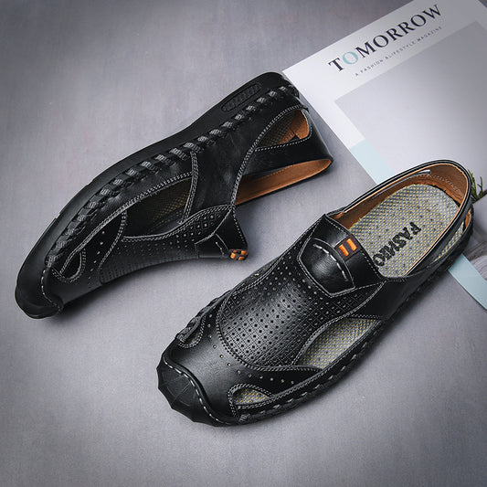 Men's Summer Leather Breathable Shoes Slippers