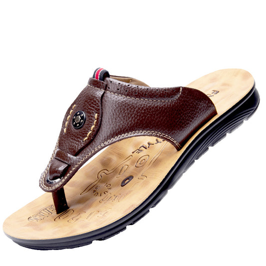 Men's Summer Sandal Cowhide Beach Shoes Slippers