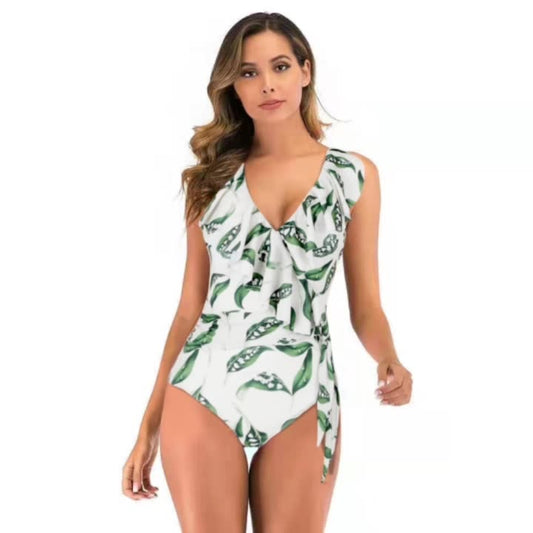 Ladies Sexy Bikini Split High Waist Ruffle Print Swimsuit