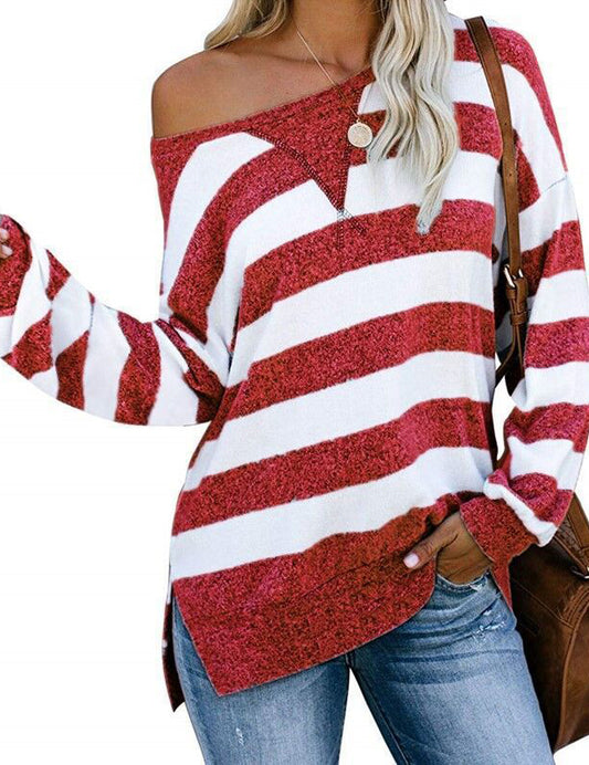 One Shoulder Striped Color Block Women's T-Shirt