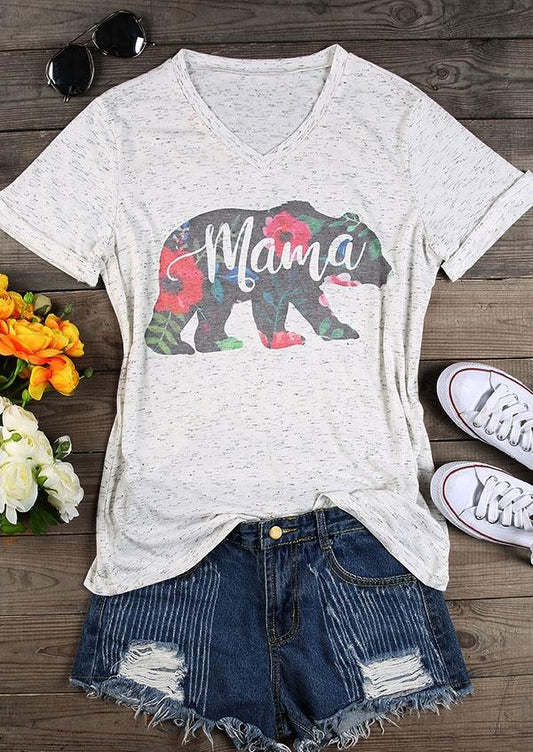 Mama Bear Floral V-Neck Women's T-Shirt