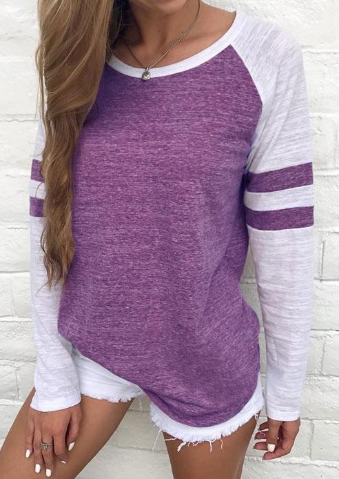 Color Block Pocket Long Sleeve Shirt Baseball Women's T-Shirt
