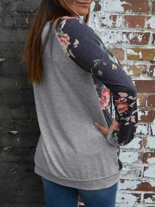 Floral Patchwork Round Neck Women's Long Sleeves Shirt