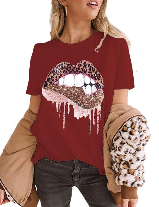 Leopard Printed Lips Tee Women's T-Shirt