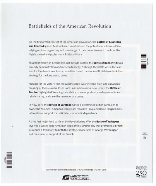 2025 USA 250th Anniversary Battlefields of The American Revolution Forever Stamps