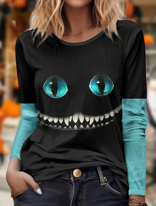 Women's Halloween Smiley Kitten Short Sleeve T-Shirt