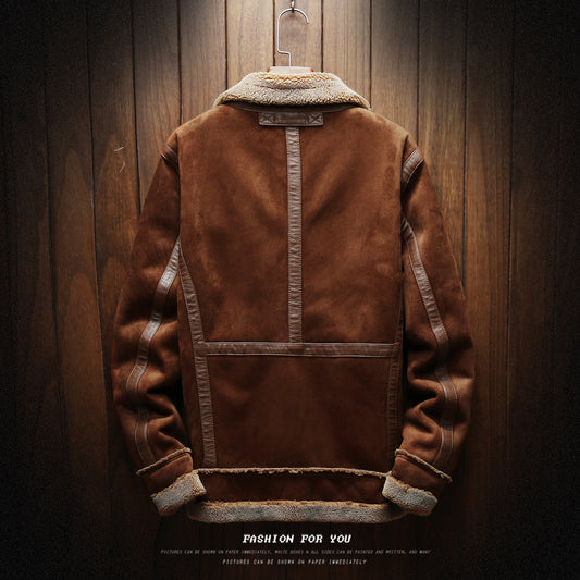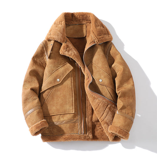 Men's Outdoor Leather Fleece Lapel Jacket