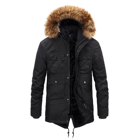 Men's Hooded Fur Collar Winter Thickened Jacket