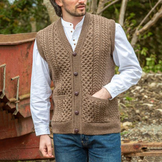 Men's Sleeveless Vest Button Knit Cardigan Jacket