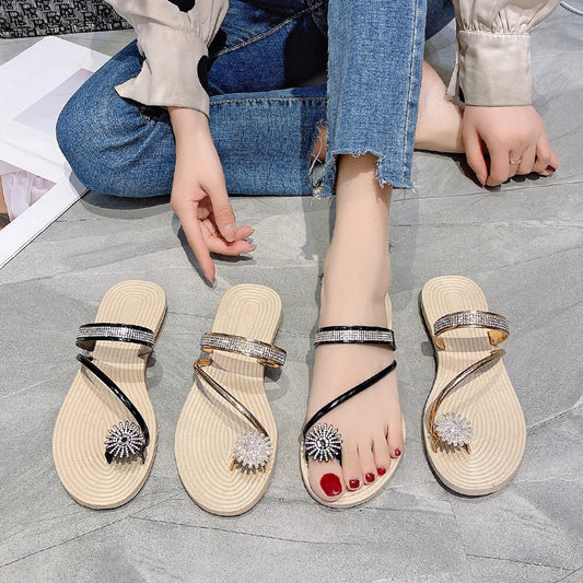 Beach Sandals Rhinestone Flats For Women