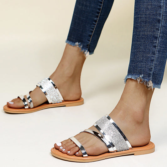 Women Tassel Open Toe Rhinestone Flip-flops Flat Sandals
