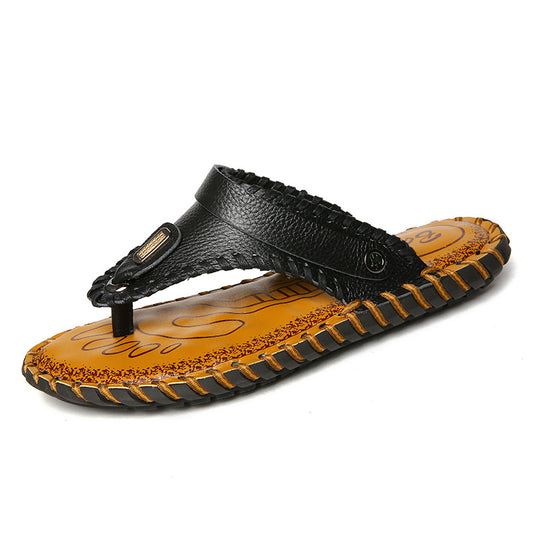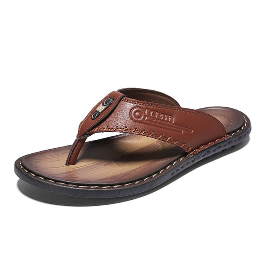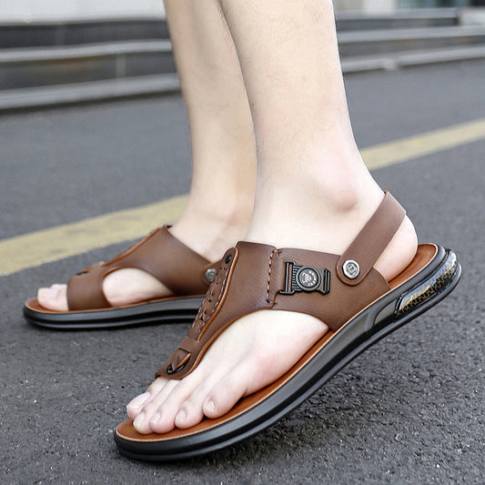 Men's Toe Layer Leather Sandals Simple Beach Slippers