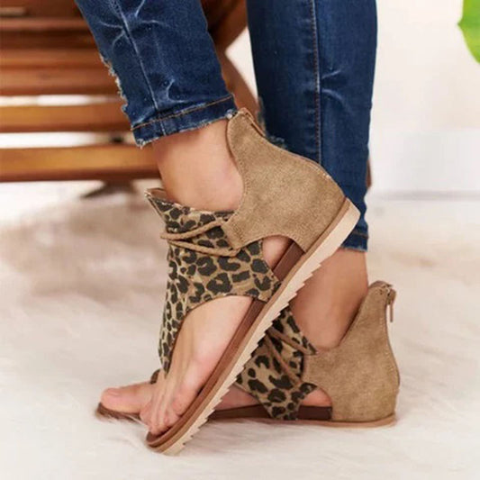 Flip-flops Back Zipper Leopard Print Casual Light Beach Sandals