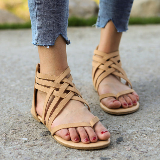 Womens Strap Sandals Hollow Flat Zipper Shoes