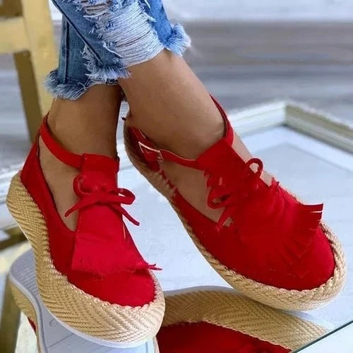 Round Head Thick Bottom Tassel Sponge Cake And Women's Single Shoes