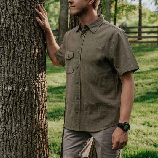 Summer Men's Shirt Pocket Flat Lapel Simple Shirt