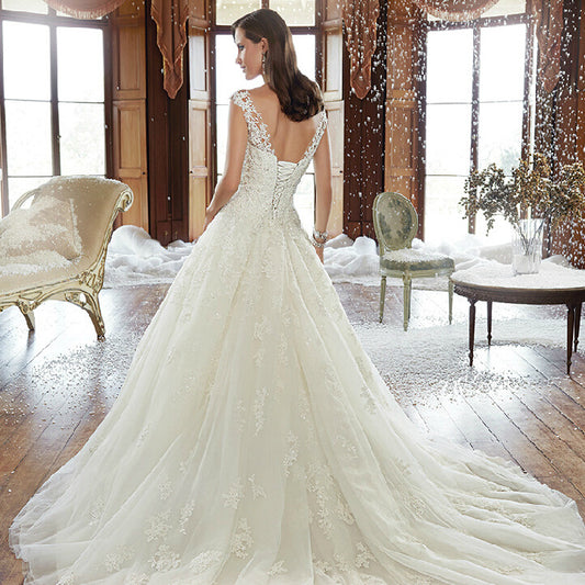 Petal Neck Vintage Trailing Lace Wedding Dress