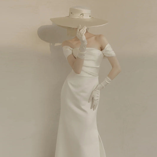 White Satin Simple Slim Fit Trailing Wedding Dress