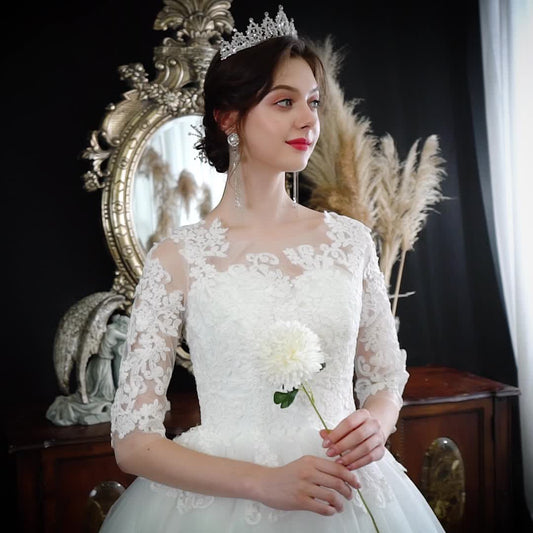 Women Luxury Plus Size Trailing Lace Wedding Dress