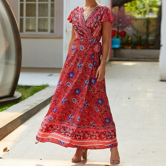 Women's Dress Deep V Neck Long Sleeve Ruffle Dress