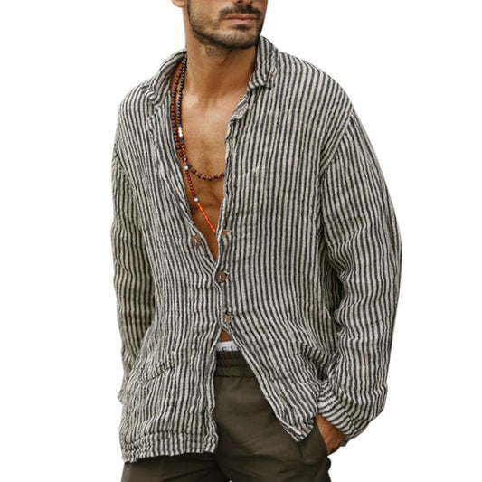 Men's Fashion Striped Print Casual Linen Shirt