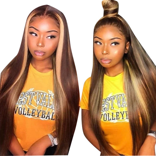 Mid-point Female Long Straight Hair Color Wig Full Headgear Wigs
