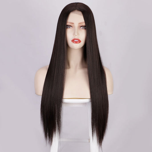 Women's Long Straight Hair Front Lace Chemical Fiber Wig Headgear