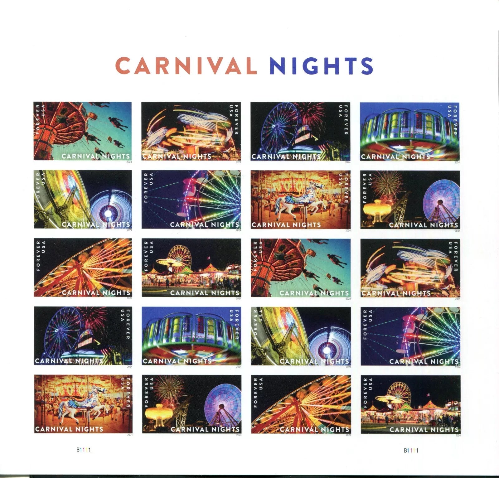2024 USA Carnival Nights Unique Color Forever Stamps