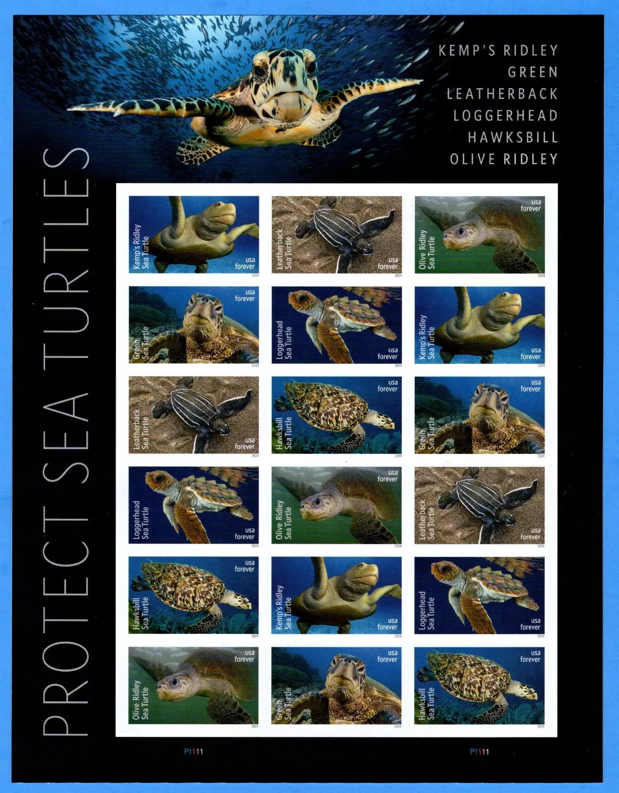 2024 USA Protect Sea Turtles Forever Stamps Sheet of 18 Forever Stamps