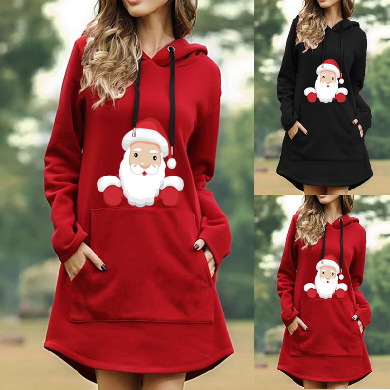 Christmas Print Hooded Long Sleeve Women's Sweatshirt Dress