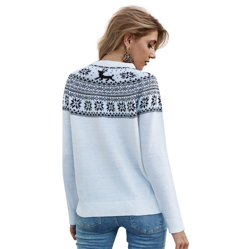 Christmas Snow Deer Sweater Crew Neck Knitted Sweater