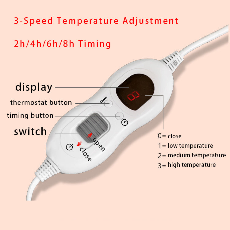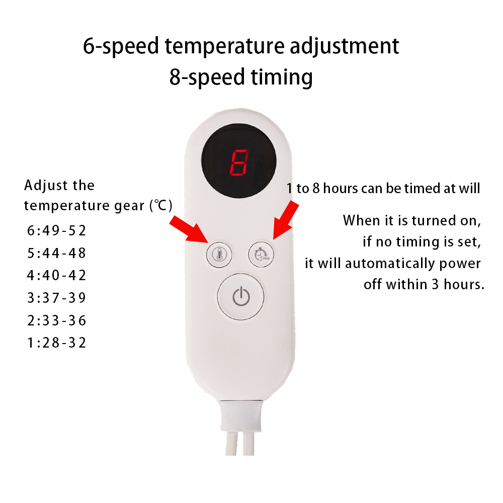 3: Full line temperature control system, constant temperature heating, safety and power saving Through the controller, you can get 3 kinds of temperature, 35~60℃, the timer allows you to set the hour to close.